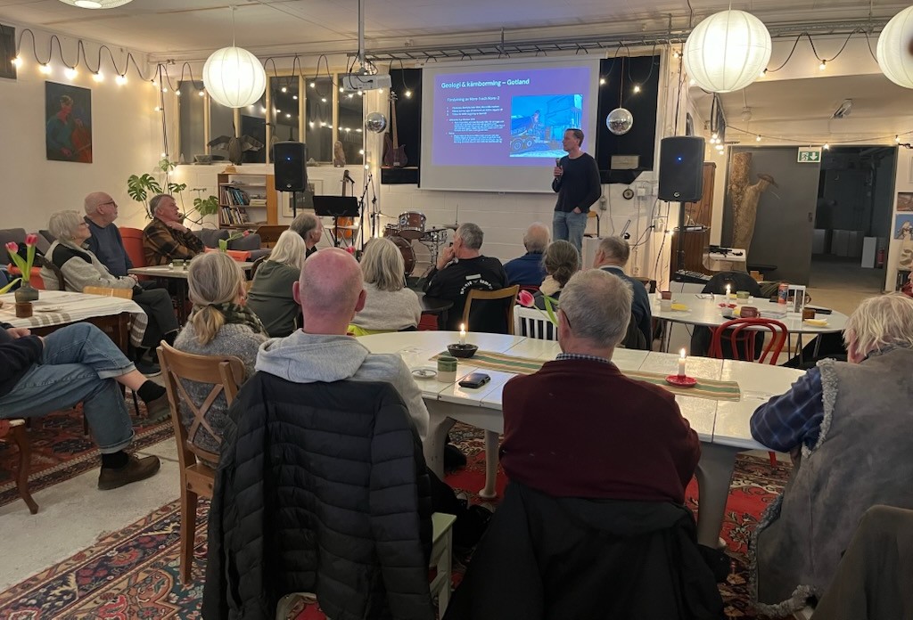 Det blev en mycket trevlig och informativ kväll på Hantverkshuset i Burgsvik när geologen Peter Dahlqvist från SGU i tisdags berättade om borrningarna som pågått i Nore, Vamlingbo under 2023. Peter var inbjuden av Forum Östersjön, som han också tackade för det ovärderliga stöd han ansåg att projektet fått från föreningen och även ortsbefolkningen under arbetets gång. Publiken på cirka 30 personer bidrog till spännande dialog med initierade och intressanta frågor.